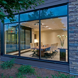 This corporate headquarters office building, situated in a suburban office park, was designed to reflect and magnify the area’s natural setting and have an unique and positive impact on the building’s users and the environment. Native waterfowl, which inhabit the site year-round, coexisting with office staff and visitors coming and going, are proof of this accomplishment. The building design takes cues from the indigenous surroundings and is positioned to take advantage of pristine water and nature views while clerestory windows provide abundant natural light. A butterfly-like canopy slices front to back through the building separating it into a training wing on one side and executive offices on the other, drawing the eye away from the simplistic single story footprint and forcing it on the beautiful setting and graceful lines.